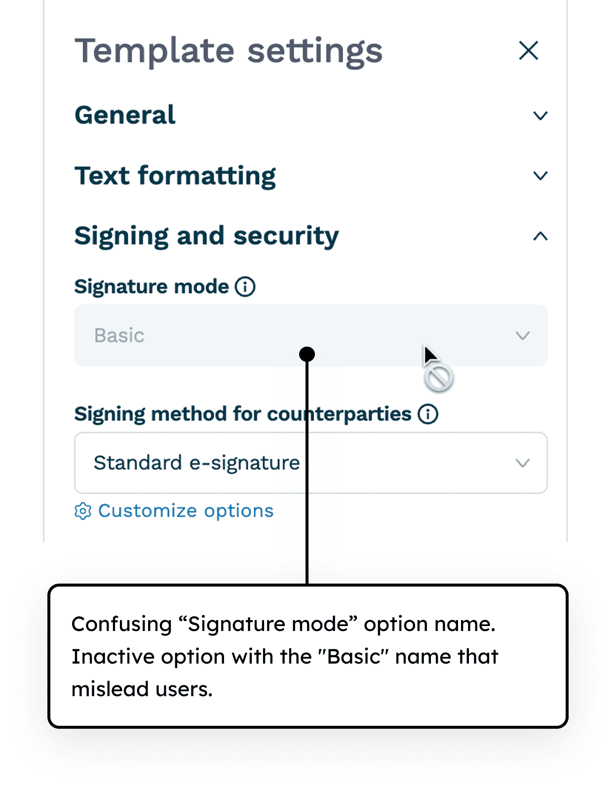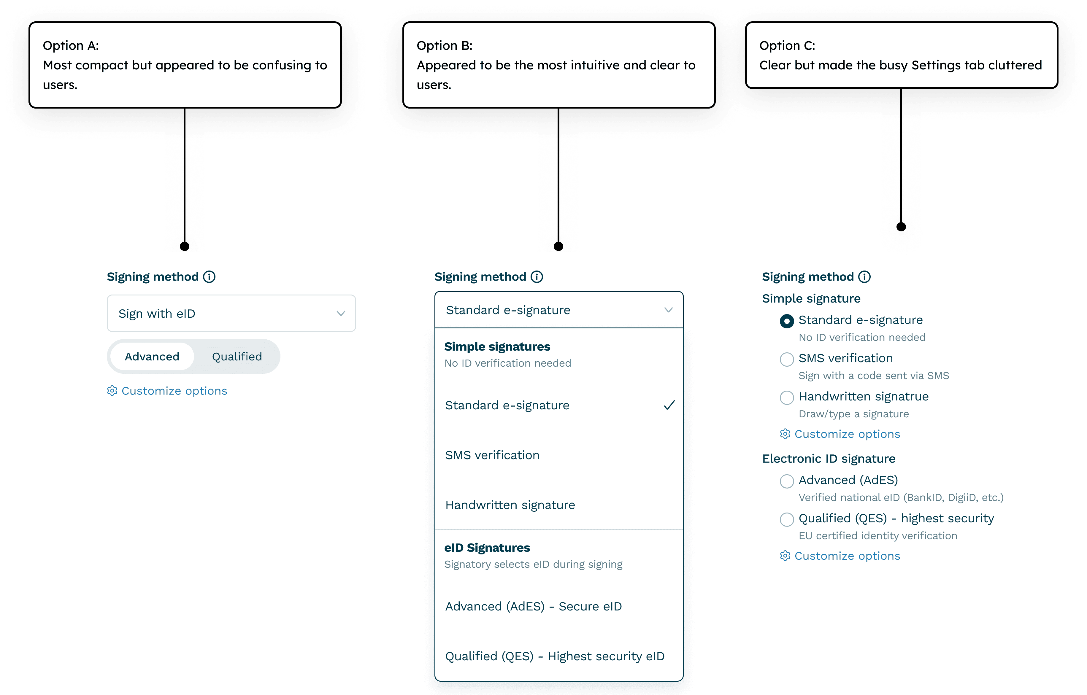 Users were confused by the “Signature mode” concept and the "Basic" option that included both Advanced and Simple signatures. Many called support, worried that their signature might not be valid.